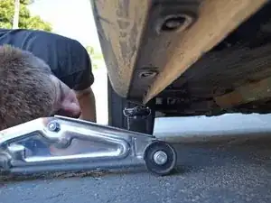 • Place your jack back in the same location on the frame you used to jack up the car. Raise the jack until it touches the jacking point on the frame.