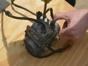 At this point, the carburetor should be fully disconnected. Lift the carburetor up out of the four wheeler and gently place it on a table where it can be further disassembled.