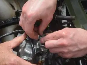 Remove the choke cable attached to the carburetor by twisting the carburetor around to unscrew it.