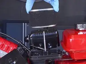 • The air filter cover will still be attached to the tiller by a flexible hose. You can push the cover to the side while you continue to work on the tiller, or follow the next two steps to completely remove the cover.