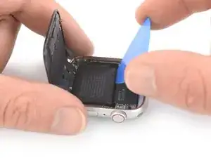 Place the edge of a curved blade into the thin gap between the display and the outer case. Start at the short side of the display, closest to the digital crown.
