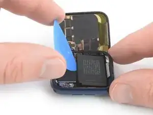 Carefully lift the battery out of its recess and place it outside the watch case opposite to the Taptic Engine.