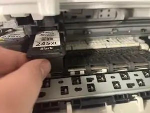 Lift the cartridge compartment located in the front of the printer to gain access on the inside of the printer.