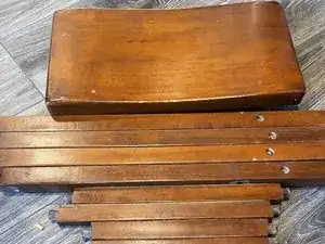 Completely disassemble the entire stool by unscrewing all the legs, support beams, and the seat using a hex key screwdriver or any matching bit.