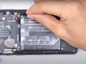 • Use a pair of tweezers to peel out the black stickers from the sides and bottom of the battery area.