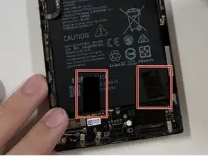Grab hold of the blue connector on the upper left side of the phone with the tweezers.