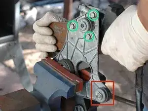 • After diagnosing the regulator and finding it to be badly bent it can be secured in a vice. Be thoughtful about where you are compressing the vice on the regulator so as to not damage the various parts of the regulator.