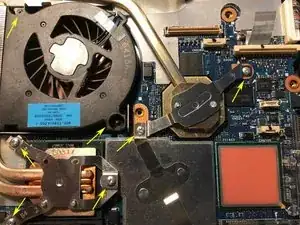 Remove the sheet metal straps holding the copper heat pipes to the chips. See second photo.