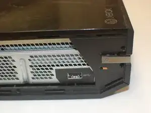 First start by locating the side of the console with the sync button or USB slot. Then carefully pry the side panel from the Xbox until it is completely separated.