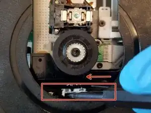 With the pointed end of a spudger slide this piece to the right