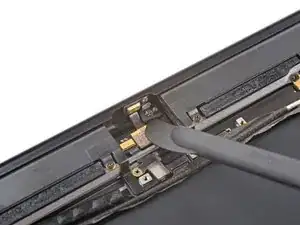 Re-insert the pick and slide it towards the top-right corner of the iPad to completely separate the top adhesive.