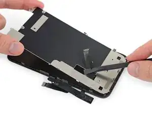 Continue pulling the display down (toward the Lightning port) as needed in order to make a gap large enough for the pick.