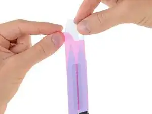 Be cautious: On some adhesive strip packages (I didn’t buy my at iFixit) they have mixed the colours! Be sure to peel off the largest piece of plastic.