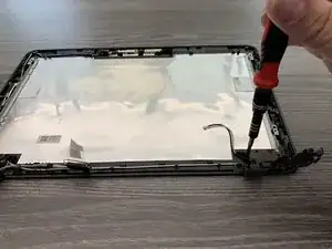 Once we release the display cable connector, we can separate the screen from the assembly.