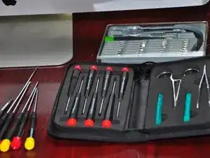 Comincia col mettere insieme tutte le parti, attrezzi, la banda anti-statica e i guanti (i guanti servono per il vetro e l'LCD).