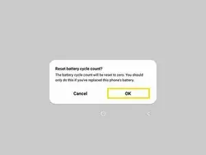 Seleziona "Ok" per finalizzare il reset del ciclo della batteria.
