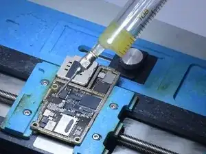 Because the phone has been heavily dropped before, we can see that there are many missing pads on the bonding pads.