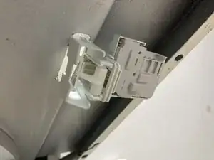 As you lift the top panel you will notice that there isn't much space. To solve this, remove the plastic clip holding the wiring harness in place with your fingers.