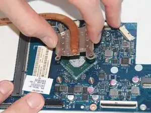 Pull the wireless card out of its port to disconnect it from the motherboard.