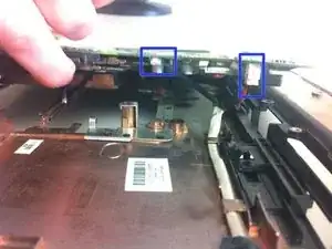 After taking out the three(3) screws, flip the laptop over so that the keyboard side is up.