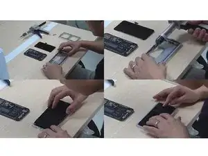 Once done, take out the glass with OCA and tear off the protective film of the OCA with a pull tape. Next, align the glass to the LCD and attach it to the right position of the LCD. After that, press the center of the glass with your one hand and fit it gently with the LCD.