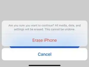 The iPhone will confirm what information will be removed during this process. Click Continue at the bottom of the screen.