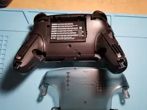 Use a pry tool or your fingernail to gently pull the two halves of the controller apart. Beware of the ribbon cable connecting the two boards!