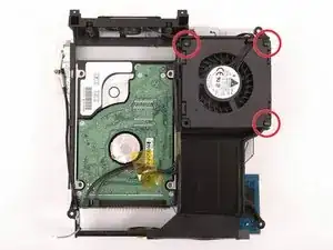 Use a #1 Phillips to remove the two screws attaching the right side of the hard drive to the plastic framework. You'll need to angle the screwdriver down to get access to the lower right screw. Be sure to apply steady force to the screws and turn slowly so as not to strip them.