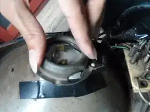 Carefully unplug the headlamp socket, and then rotate the metal ring, which holds the bulb to the body. Then, pull the bulb out slowly.