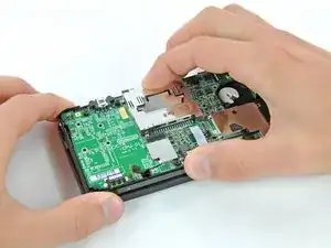 Lift the side of the motherboard that sits along the bottom edge of the 3DS.