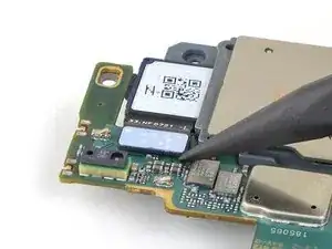 Use the pointed end of a spudger to disconnect the front-facing camera cable from the motherboard.