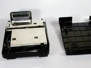 Remove the four screws on the underside of the CD tray with a small Phillips head screwdriver.