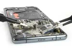 Come nella maggior parte degli smartphone, la scheda madre del Mate 40 Pro presenta un bell'assembramento di cavi flessibili e di antenna, la maggior parte dei quali blocca fastidiosamente la strada di accesso al silicio.
