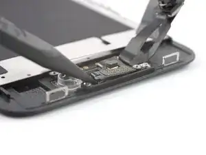Usa un paio di pinzette per rimuovere il sensore Home/Touch ID sollevandolo attraverso il lato anteriore dello schermo.