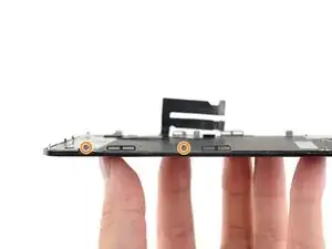 Rimuovi le viti Y000 da 1,1 mm rimanenti dai bodi superiore e inferiore della piastra dell'LCD: