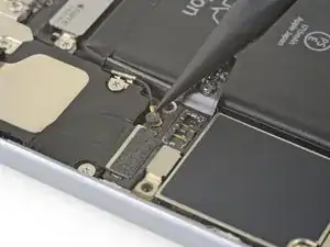 Solleva con cautela il cavo dell'antenna e guidalo fuori dal bordo del dispositivo. Usa la punta di uno spudger per sollevare il cavo e liberarlo dalle linguette di ritenzione.