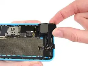 Tenendo il telefono in posizione orizzontale, solleva l'estremità inferiore della scheda logica in modo da poter afferrarla con le tue dita.