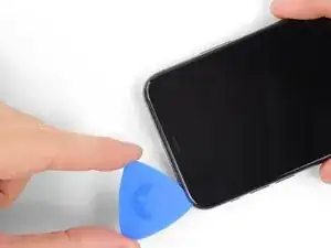 Inserisci uno spudger sotto il bordo superiore dell'altoparlante, vicino al bordo del case dell'iPhone.