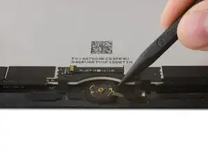 Rimuovi le tre viti a croce Phillips da 1,3 mm dal supporto per il cavo del display.