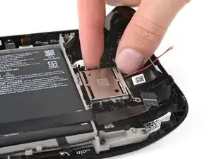 Use the point of a spudger to flip up the small locking flap on the left thumbstick ZIF connector.