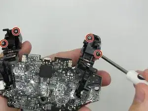 Remove both screws on the back of the motherboard under the triggers using a Phillips #1 screwdriver.