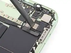 Insert the flat end of a spudger under the volume button and rear microphone cable.