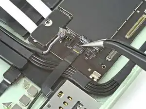 Use tweezers or a spudger to lift up the latch on the ZIF connector.