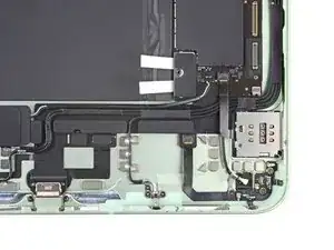 Bend the cable to the right so the two Wi-Fi and cellular antenna cables underneath are accessible.