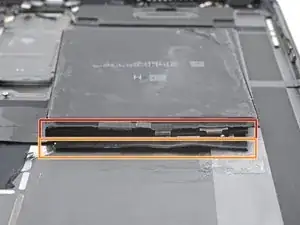 The remainder of the adhesive is located between the battery cells, underneath their battery boards.