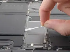 Leave the opening pick inserted next to the battery connector to prevent the adhesive from resealing.