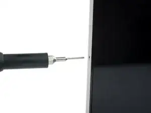 Insert a SIM card eject tool into the small hole in the SIM card tray, located on the volume button edge of the iPhone.