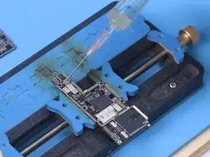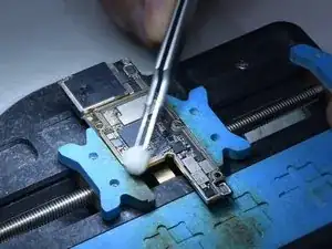 Push the logic board gently with tweezers when the temperature reaches 165 °C. If the logic board is loose, the tin has melted.