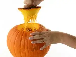 Now comes the delicate process of removing the internal components. We reach our tweezers into the unexplored depths of Pumpkin and pull out an ...