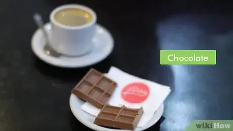 8Servilo con il cioccolato. Talvolta le caffetterie servono il caffè con un pezzetto di cioccolato. Evita altri accompagnamenti saporiti, soprattutto biscotti secchi o con gocce di cioccolato.[4] Il più delle volte l'espresso viene servito da solo.